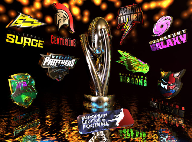 Project Pixxl "The Great Eight" of the European League of Football. Phil L. Herold was inspired by the Championship Trophy and the eight founding teams of the newly founded ELF to create this work of art.